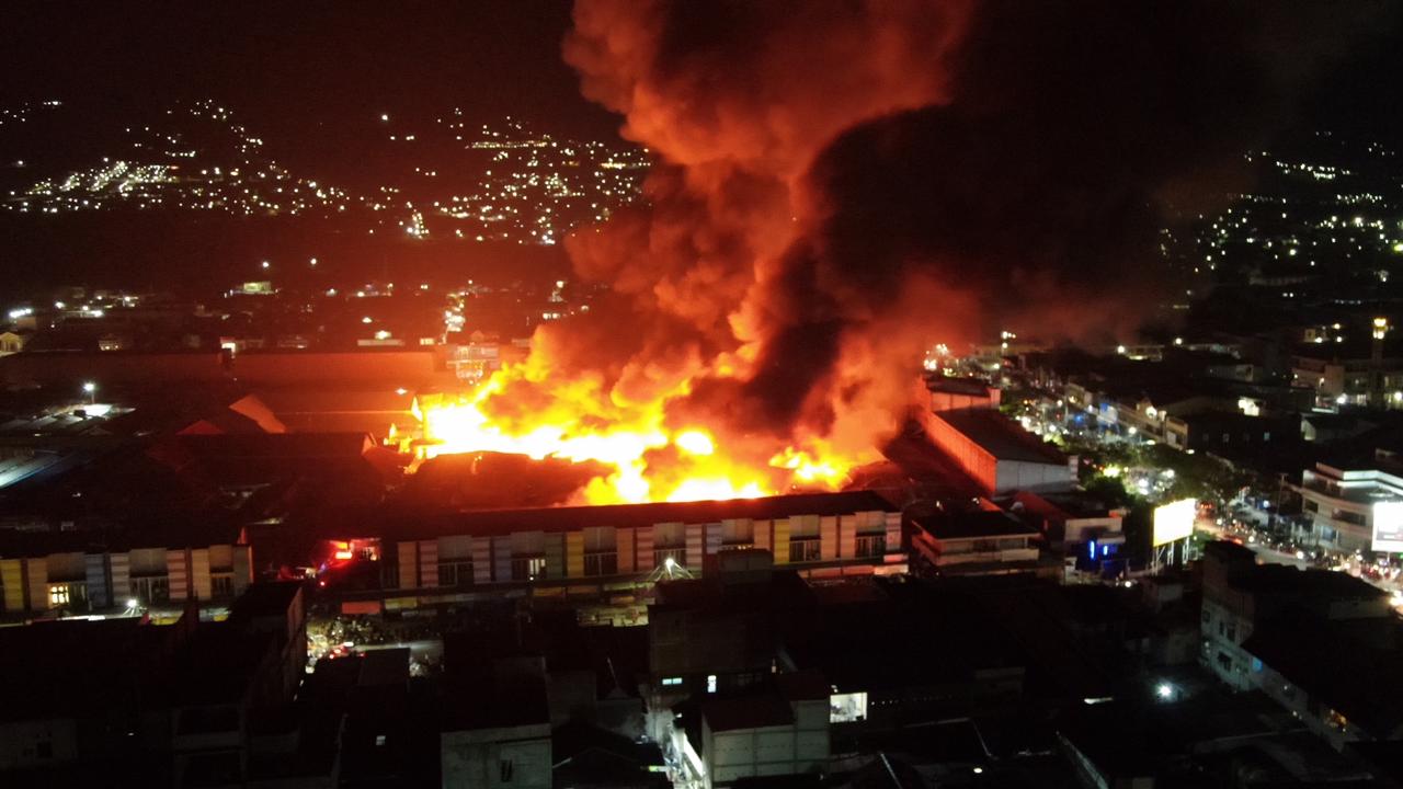 JURNAL LENTERA, Palu – Kebakaran hebat terjadi di pasar Inpres Manonda Palu, Sulawesi Tengah, Selasa, 29 Maret 2022. Kebakaran terjadi sekira pukul 20.30 WITA.