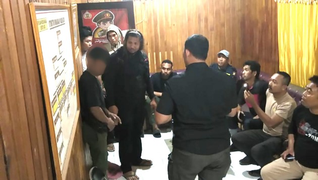 Terduga pelaku pembunuhan seorang IRT berinisial OS saat berada di Polres Banggai dan tengah diinterogasi oleh tim Resmob Satreskrim Polres Banggai pada Kamis malam, 6 Oktober 2022. (Foto: Humas Polres Banggai)