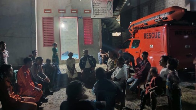 Personel Pos SAR Kantor Pencarian dan Pertolongan Palu di Kabupaten Parimo bersama aparat setempat saat berkomunikasi bersama keluarga korban di Desa Tumpapa Indah, Kecamatan Balinggi, Kamis malam, 1 September 2022. (Foto: dok Kantor Pencarian dan Pertolongan Palu)